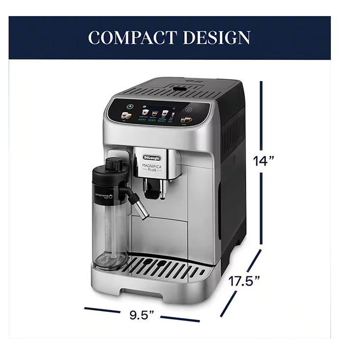The DeLonghi Magnifica Plus is an exceptional choice for anyone seeking a versatile and convenient automatic coffee and espresso machine that brings the café experience directly to their home. Its extensive menu of 18 one-touch recipes, combined with the precision of the LatteCrema milk carafe and the ease of touchscreen control, streamlines your coffee ritual. The dedicated Coffee Over Ice function is a standout feature for iced coffee lovers. With its ability to personalize recipes and its user-friendly interface, the Magnifica Plus delivers consistent, delicious results with minimal effort, making magnificent coffee truly one touch away.