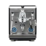 PID temperature regulation pinpoints boiler temperatures much more precisely, while the dual boiler design ensures that each boiler is monitored and heated independently, guaranteeing greater stability. The RIDE features a substantial 2.8 L water reservoir, a 0.75 L stainless steel brew boiler, and a 1 L stainless steel steam boiler, ensuring ample capacity for multiple drinks. It also boasts two uniquely vibrant blue gauges that provide clear readouts for both brew and boiler pressure. The Fast Heat Up functionality intentionally overheats both boilers simultaneously, allowing them to reach functional temperatures even quicker, significantly reducing your waiting time.