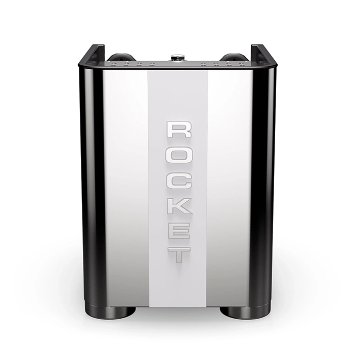 From the exterior Rocket has skillfully maintained the circular cutout panels that defined the original Appartamento while introducing several changes to streamline the design. The curved back panel now gracefully matches the contour of the feet, and the new portafilter is elegantly monogrammed with the signature Rocket “R” on its chromed tip. The steam and hot water knobs have increased in size, showcasing more metal and providing a more substantial feel. The E61 group itself features a bold new angular design, a unique touch unseen on other espresso machines. In a final, thoughtful touch, the cup tray has been reimagined to do away with previous plastic cup railing and the back of the machine proudly displays the word “Rocket” in a stylish stripe down the center.