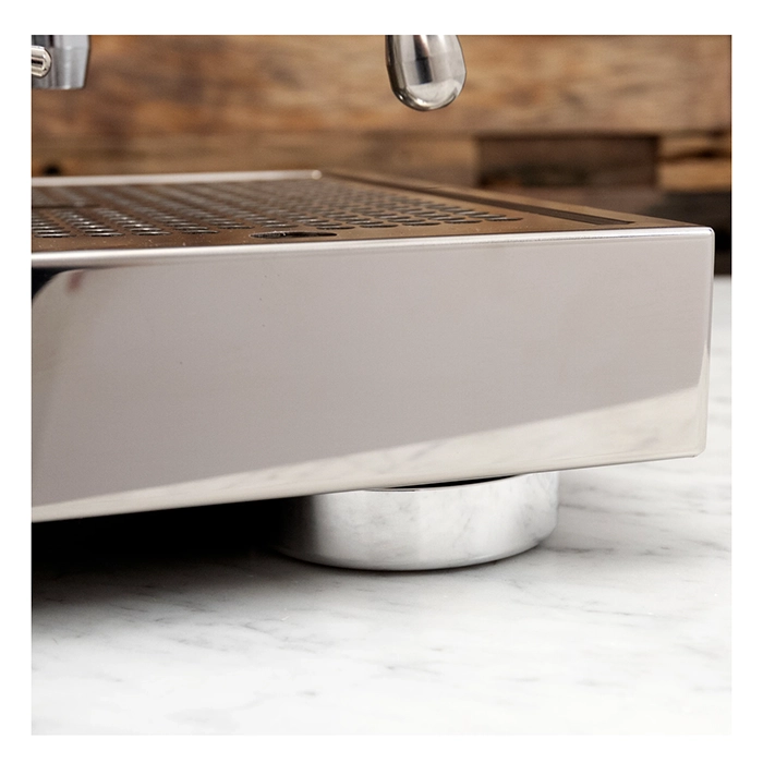 Internally, the Appartamento employs a large 1.8 L copper boiler, which, in concert with a 1200 watt heating element, makes for impressive strength brew after brew. Integrated electronic sensors diligently monitor both the boiler and reservoir levels for low volumes, issuing alerts to prevent any issues. If, for whatever reason, these warnings are ignored, the Appartamento is designed to safely shut down automatically to avoid a dry-boil. This protective feature ensures the machine continues functioning at its best for years to come.